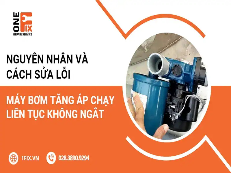 Máy bơm tăng áp là thiết bị quen thuộc trong nhiều hộ gia đình, giúp tăng áp lực nước để người dùng có trải nghiệm tốt hơn khi sinh hoạt hằng ngày. Một trong những sự cố thường gặp là máy bơm tăng áp chạy liên tục không ngắt, gây tiêu tốn nhiều điện năng, giảm tuổi thọ thiết bị và có nguy cơ hỏng hóc các bộ phận bên trong máy bơm. Trong bài viết này, 1FIX sẽ cùng bạn tìm hiểu những nguyên nhân phổ biến dẫn đến tình trạng trên, đồng thời đưa ra các cách xử lý hiệu quả và an toàn ngay tại nhà, cùng tham khảo nhé!